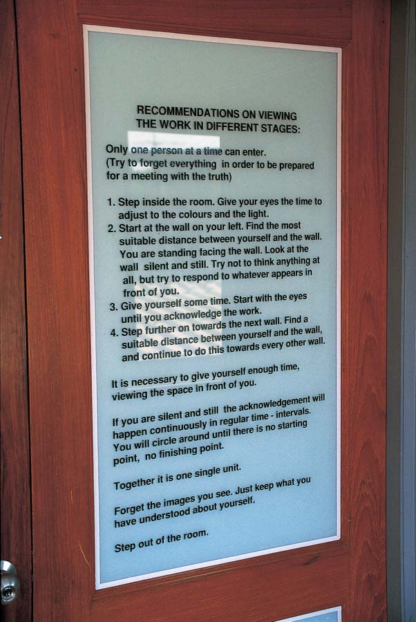 Held at the now defunct Art Forum Gallery in Bangkok, the minimal exhibition was set up in the main gallery room with only one person allowed to enter at a time. When the door was closed no-one could enter, and being the actual gallery entrance this meant only one person could be in the gallery at a time. The entire room was painted in gleaming white boosted by bright fluorescent lighting. Expectant people would struggle to search for the exhibiting artwork but once their eyes had adjusted to the brightness they would notice a subtle word on each of the five walls “I, My, Me, Mine, Myself” egocentric references to the artist. The words became art objects with the notion of facing yourself in the gallery, meaning that the individual in fact becomes the artwork.
