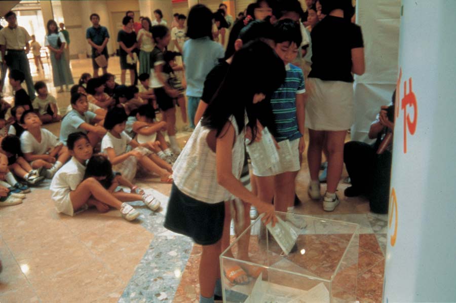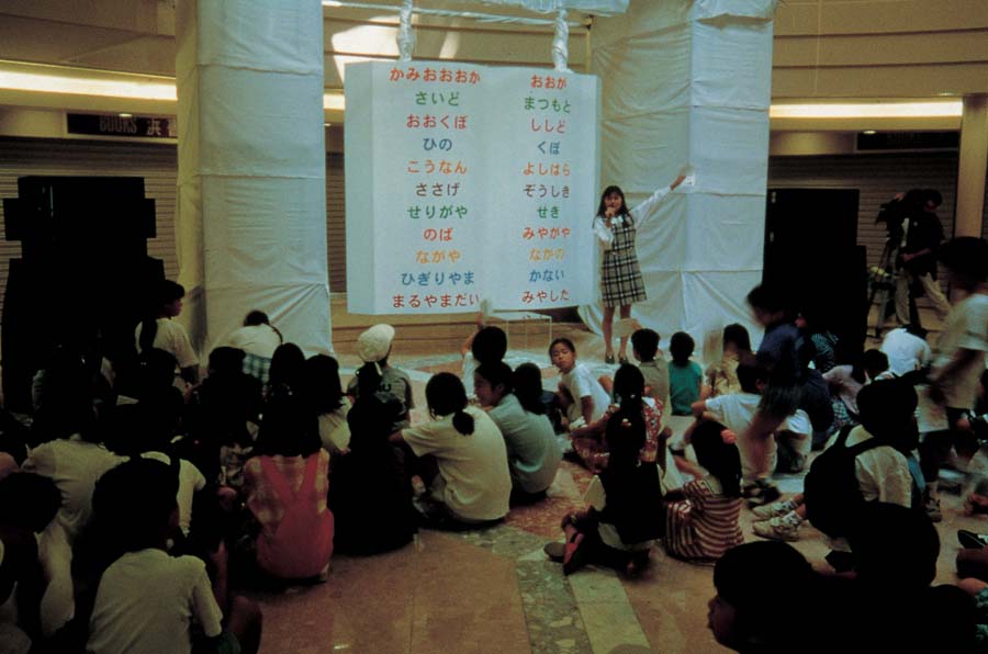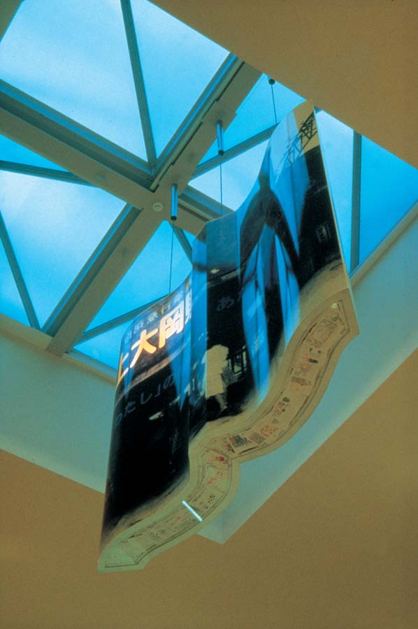 Linking history with the present, Navin Rawanchaikul’s first ever commissioned public art work involved suspending a huge open book hung from the ceiling above an escalator inside a new mall in Yokohama. The outside cover was coated in an old image of a train station which had been relocated to the basement of the building complex. Across the open double page spread were 12 pairs of names of different streets and places in the neighbourhood; on one page were the names of places that no-longer-existed while on the other page were new modern locations. Within the book’s transparent frame were stored hundreds of postcards written by local children regarding their thoughts and memories of life in their time. The book functioned as a time capsule and is scheduled to be opened up after the year 2016.