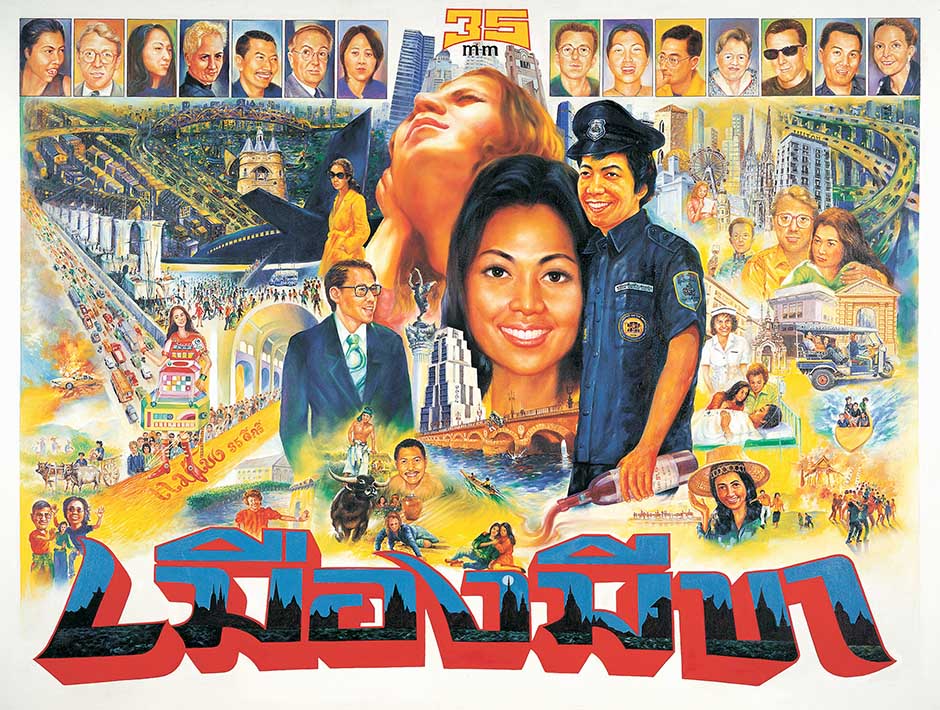 Emulating the old hand-painted movie posters popular in India and Thailand, it marked the first occasion that Navin’s signature vintage billboard paintings were produced, with a series of Cities on the Move paintings narrating a faux movie plot that responded to each of the exhibition’s locations. Reproduced as posters and billboards, the paintings were widely shown in public spaces including local papers. There was significant merchandising also, with a miniature tuk-tuk toy, t-shirts and custom-made jackets, and in collaboration with French designer brand agn’s b. a limited-edition tuk-tuk driver shirt was produced.