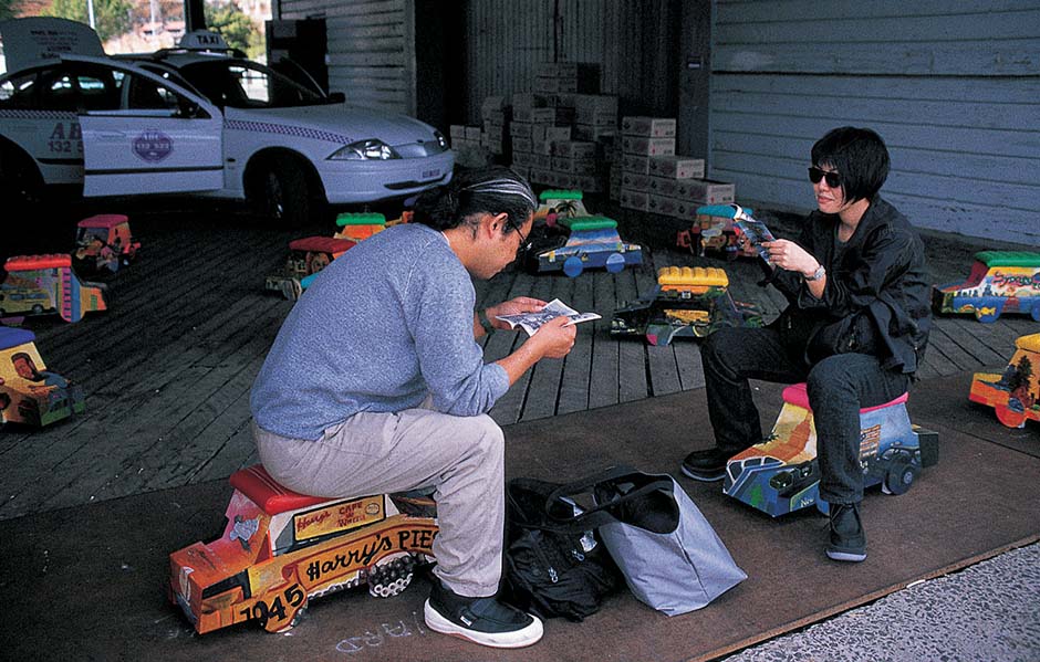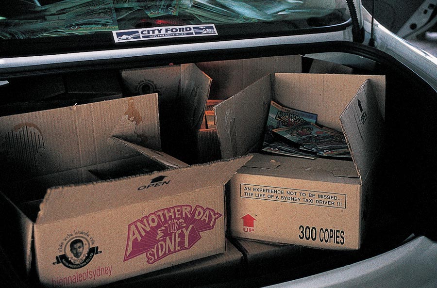 Taking the Bangkok’s Taxi Gallery concept on the road for the first time, Another Day in Sydney responded to Sydney as a multicultural city of immigrants where cab drivers come from countries across the planet. Navin Rawanchaikul collaborated with film-writer peer Teerawut Chareonvicha documenting numerous interviews with such drivers, producing the first comic book under Navin Production. Based on a day in the life and their experiences, during the biennale period the project invited “ABC” company cabbies to distribute comics during show. At the waterfront pier gallery space, an actual ABC taxi cab was parked and filled with free copies of the Another Day in Sydney comic, with visitors sitting in the taxi’s front seats listening to the interview recordings. Creating a social environment, the installation also included dinky, custom made taxi stalls for visitors to sit on and soak up the ambience.