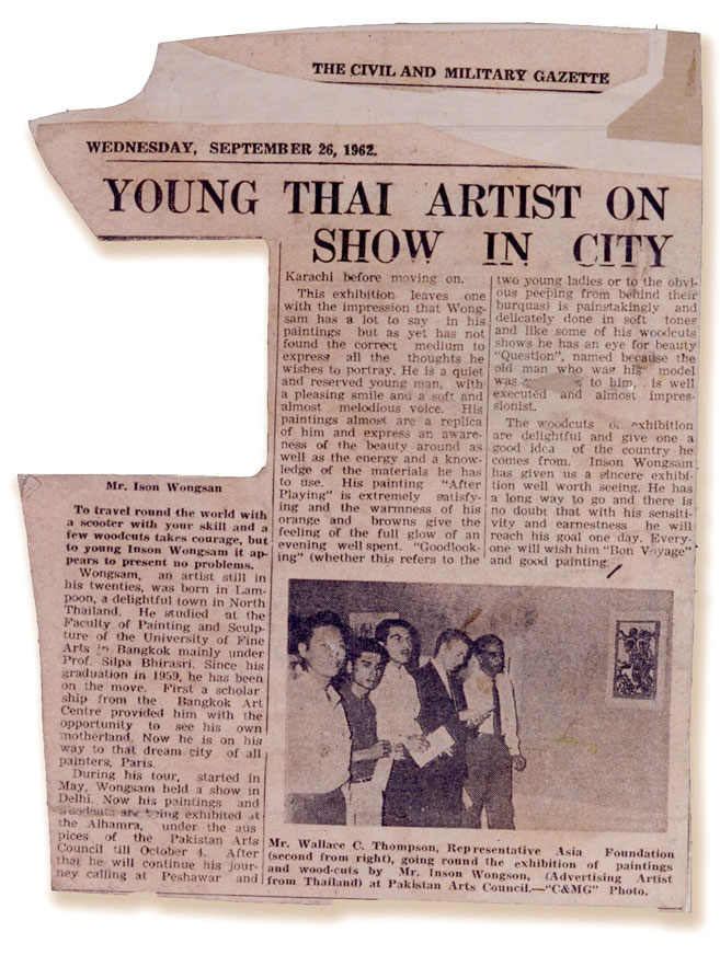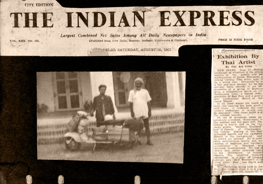 For a group show at Laura Pecci Gallery in Milan, the replica sculpture of young Inson on his faithful Lambretta scooter was presented at a young gallery in Milan. Connected to the project at Le Consortium in Dijon, the two young artists from Chiang Mai joined Navin to build a small temporary shelter made from cardboard inside the gallery. A series of Fly with Me to Another world drawings were auctioned to raise money for their trip after losing most of their funds at Pescara “the Italian beach city” while waiting for police officers to approve their lost dream of riding the Lambretta to France.