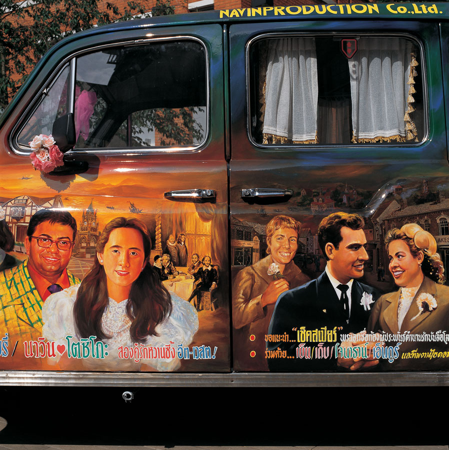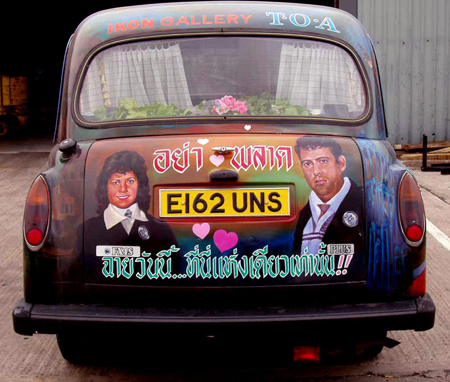 Exhibited at two UK exhibitions in the space of a year, the custom painted black cab was supported by a two-volume comic book based upon the life of a Birmingham taxi driver. Playfully incorporating time travelling theatrics by William Shakespeare, the romantic tale of cabbie Pat and how he met his wife Mary has shades of Romeo and Juliet about it.
