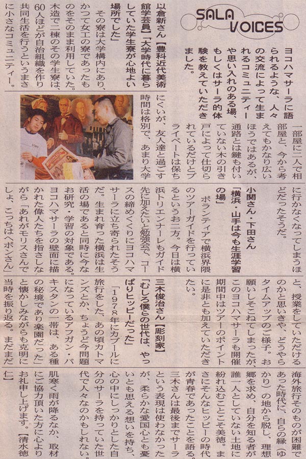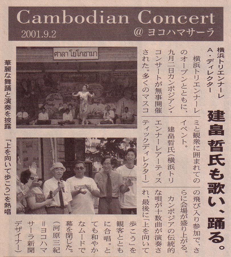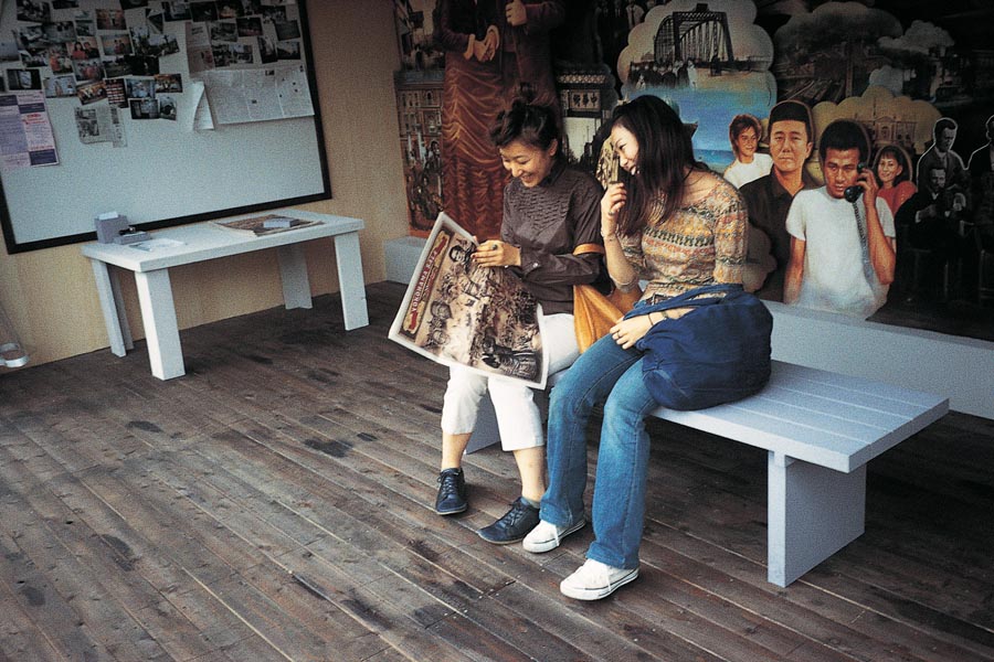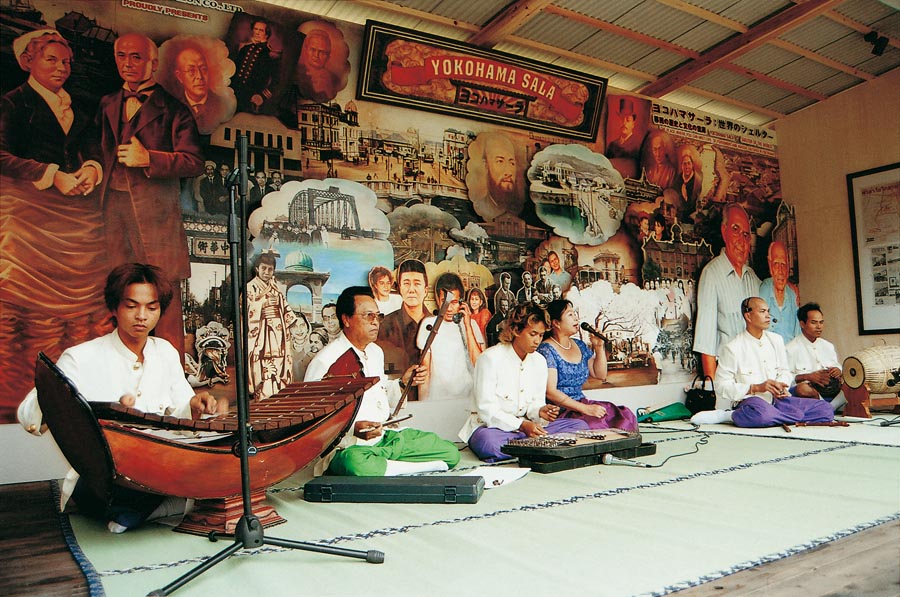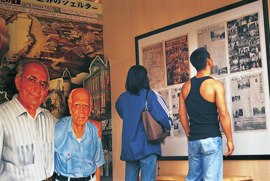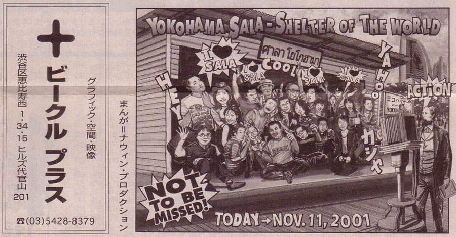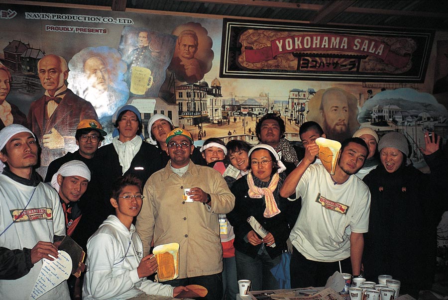 With Yokohama historically Japan’s first international port, the area has a strong foreign influence, which Navin Rawanchaikul responded to from the position of a foreigner living in Japan. A Thai sala, or open-sided pavilion, was imported to Yokohama to serve as an imaginative train station, the Yokohama Sala. A platform along an old disused railway track in a downtown public park was open 24-hours a day during the three-month long 2001, 1st Yokohama Triennale. Inside the sala was a cinema style billboard painting pertaining to the history of foreign influence in Yokohama, beginning with the 19th century American naval Commodore Perry. Navin and his band of collaborators, which ranged from art professionals to students and NGOs, interviewed foreigners living there today and published the stories alongside local history, sport, music, food, and comics, in a series of five custom-made free Yokohama Sala newspaper. Intended as a space for creativity but also a place to rest, the Yokohama Sala hosted special events including traditional music from a Yokohama-based Cambodian band and a samba drum performance by a local youth club.