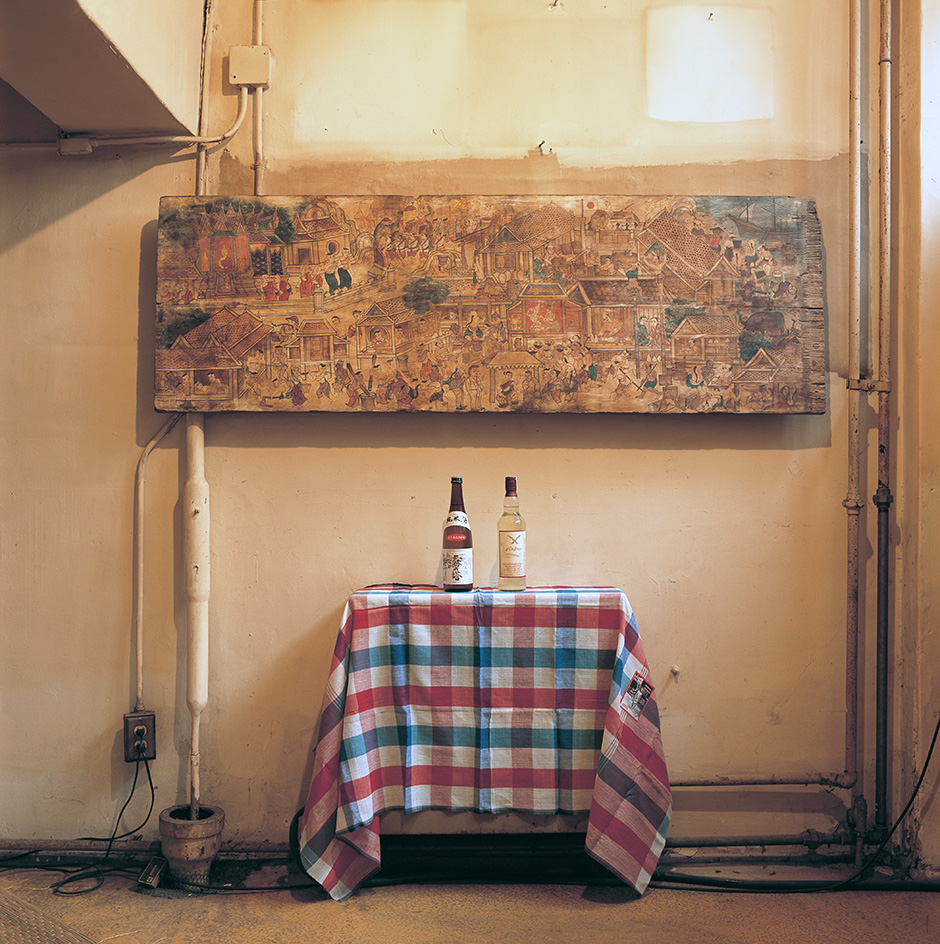 A farewell exhibition for a historical building in Tokyo built in 1937 as a centre for rice trading, which in the 1990s became the home for several Japanese contemporary art galleries. The exhibition organisers invited more than 30 artists to explore various spaces throughout the building which was scheduled to be demolished. We are the Children of Rice (Wine) was a myth relating to the history of the building and the historical relationship between Thailand and Japan dating back 700 years when Japanese pirates smuggled into Siam. While helping gallerist Shugo Satani to move stuff out from a storage room in the building, Navin Rawanchaikul found an old mural that seemed to be made by one of his country-mates. It was a sort of Thai traditional temple mural on a wooden panel. The painting recorded lifestyles of people from the Ayutthaya period surrounded by visiting foreign guests. There are several scenes in the mural revealing how international visitors were a part of Siamese life, including a scene of Japanese folk eating, drinking, and socialising with the locals. The mysterious mural was presented in the exhibition along with seven panels of comic telling the story how Navin found it. The installation included a video documenting Navin and his friends drinking at a sala in a suburb of Chiang Mai, discussing the origins of the local Thai local wine sato and Japanese’s sake both of which are made from rice. It was the beginning of ongoing research into the historical brotherhood of both countries and the forthcoming original liquor from Navin Production.