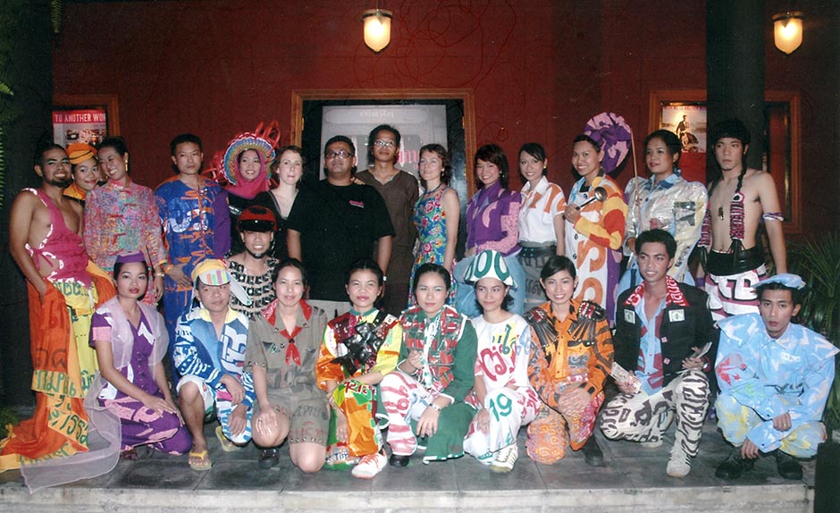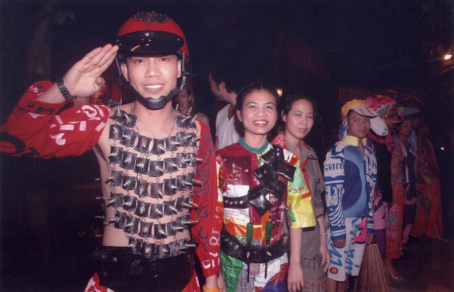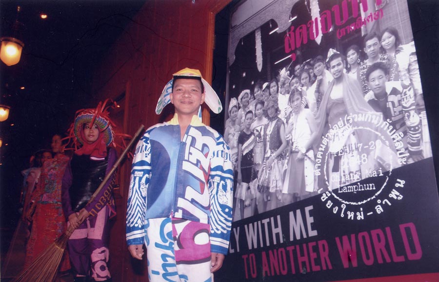 Essentially a launch for the Public Art In(ter)vention book produced in conjunction with the same titled symposium held in Lamphun and Chiang Mai the year before, the event included fashion show produced by a Chiang Mai-based artists collective known as Beauty Suit (Jarkkrit Chimnork, Estelle Cohenny andKatherine Olsten) who collaborated with Lamphun students to design outfits based upon uniforms using recycled objects. The 20 uniforms were displayed for 2-month exhibition at the ground floor of Jim Thompson Art Center together with documentary film on the Fly with Me to Another World project activities in Lamphun and Chiang Mai.