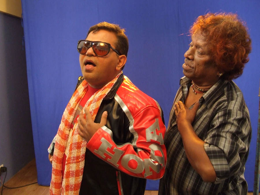 Shown in conjunction with the IMF World Bank 2006 meeting in Singapore, Diaspora was a docu-performance commissioned by Theatre Works inviting international visual artists, performers and musicians to explore issues of Diaspora. Directed by Ong Ken Sen, the stage setting comprised multiple screens showing images from various regions of the world. This epic image and sound panorama was underscored by a timeline of Chinese music spanning 2000 years, performed by the Singapore Chinese Orchestra, which was mixed with electronic music into an ambient environment resonant with nostalgia and future visions. Disconnected to the overall tone, Navins of Bollywood appeared at the final part of 80-minute show which was the only work to take different interpretation of diasporal theme through a comedic slant to nations and identities. The Navins of Bollywood billboard was also displayed in front of the Esplanade’s concert hall where the show was presented over four evenings.