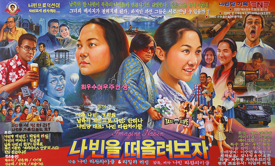Scheduled for release at the second edition of Platform Seoul in October 2008, Imagine Nabin is a sentimental tale of two Nabins from North and South Korea. Starring Korean talents Lina Ahn and Christina Jung, alongside Navin Production mainstays Navin Rawanchaikul and Pandit Chanrochanakit, Imagine Nabin, tells the story of the Navin Party chairman coming to Korea to see his old friend Pandit. Along the way he discovers that Korea, a country with a language that has no ‘v’, is home to numerous young women and girls who share his name, Nabin. Erecting a Navin Party office in Seoul, Navin and Nabin (Lina Ahn) gather together the Nabin of Korea. When they attempt to connect with Nabin in the North they are turned away by the authorities. Meanwhile, with a relationship emerging between them, Pandit and Nabin devise a crude plan to evade border authorities and send leafleting balloons north. Both are arrested as the first balloon is released. Distressed by the rejection Navin goes off to drink and is out of contact. All the while, almost in another world, a lone leaflet changes the life of a Nabin in North Korea (Christina Jung), who sneaks into Seoul and joins the Navins of the world to campaign for the couple’s release.